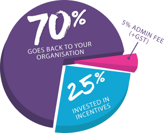 Fundraise for Schools and Clubs allows organisations to choose between two fundraising options. Organisations have the choice to fundraise with or without incentive rewards, allowing them to align their approach with their specific goals and the preferences of their participants. This customisation empowers organisations to create a fundraising strategy that is tailored to their needs, maximising participant engagement and overall success. We prioritise impactful contributions, steering clear of unnecessary and wasteful inclusions. Instead, we redirect those funds directly back into your pocket to enhance the effectiveness of your fundraising efforts. With the highest percentages in the industry, we take pride in the significant difference our approach has made.